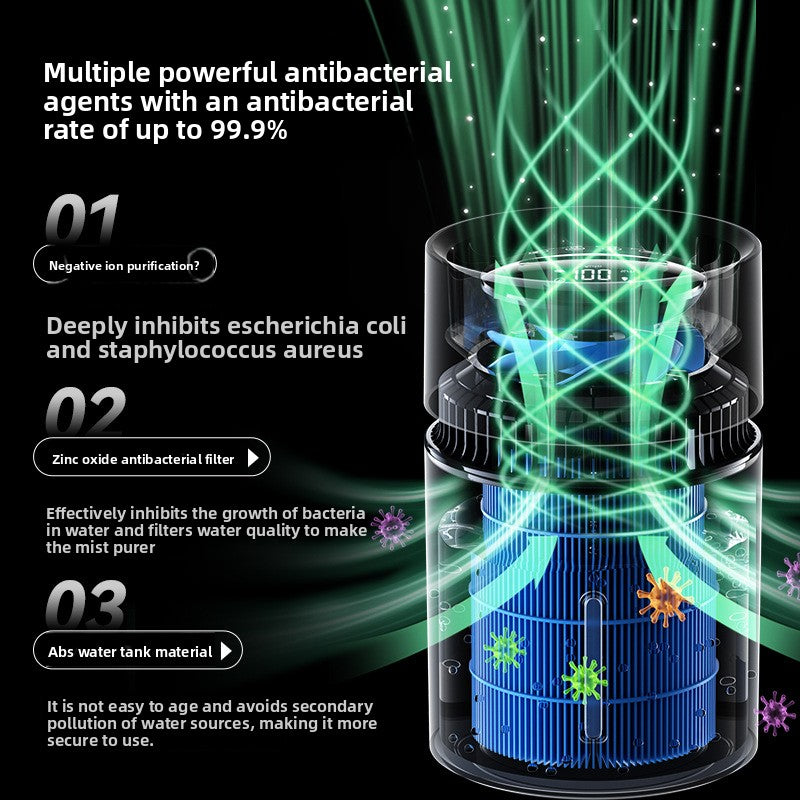 - ⚡ Negative Ion Purification — Releases negative ions to purify air while humidifying simultaneously.
